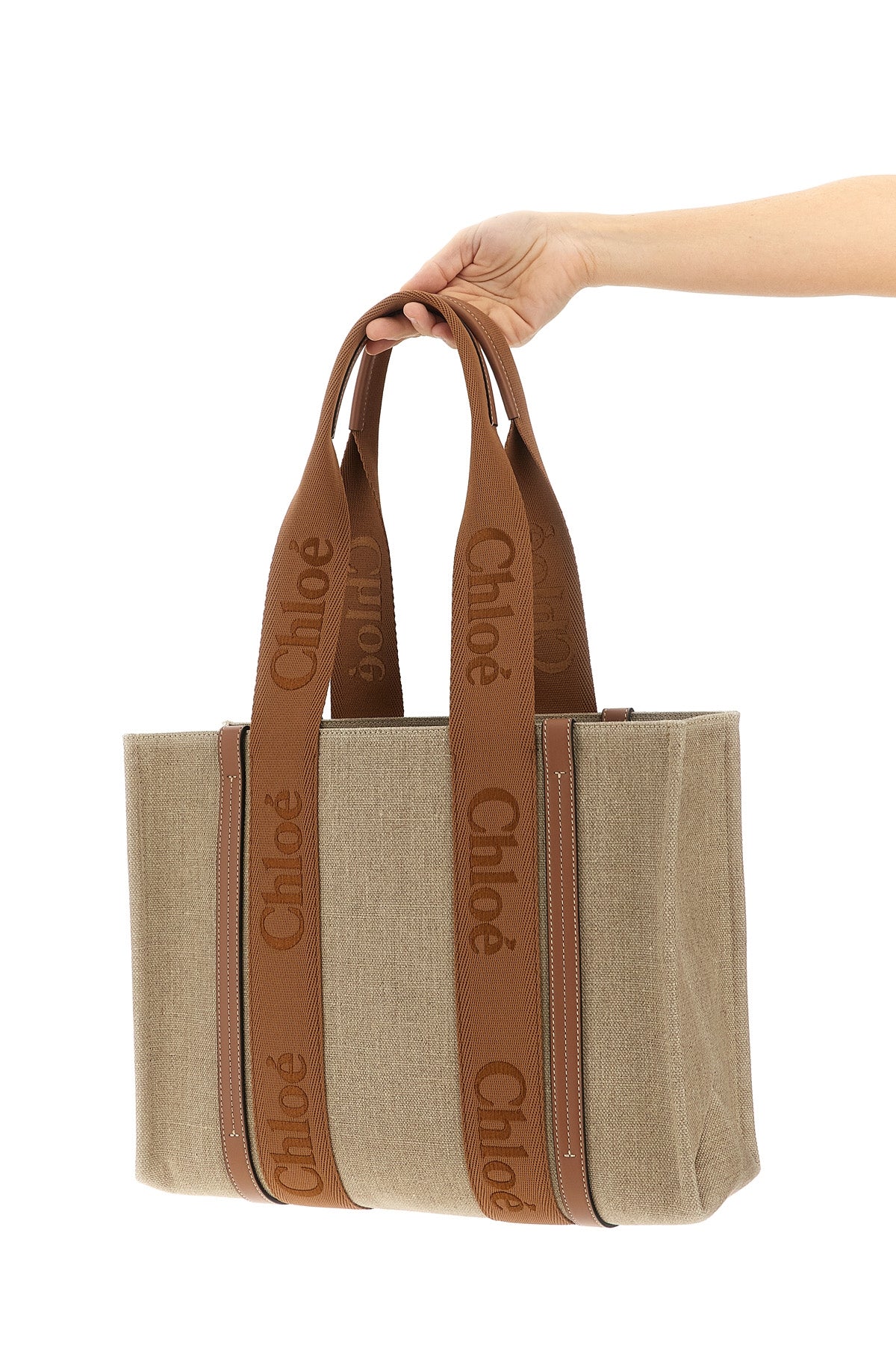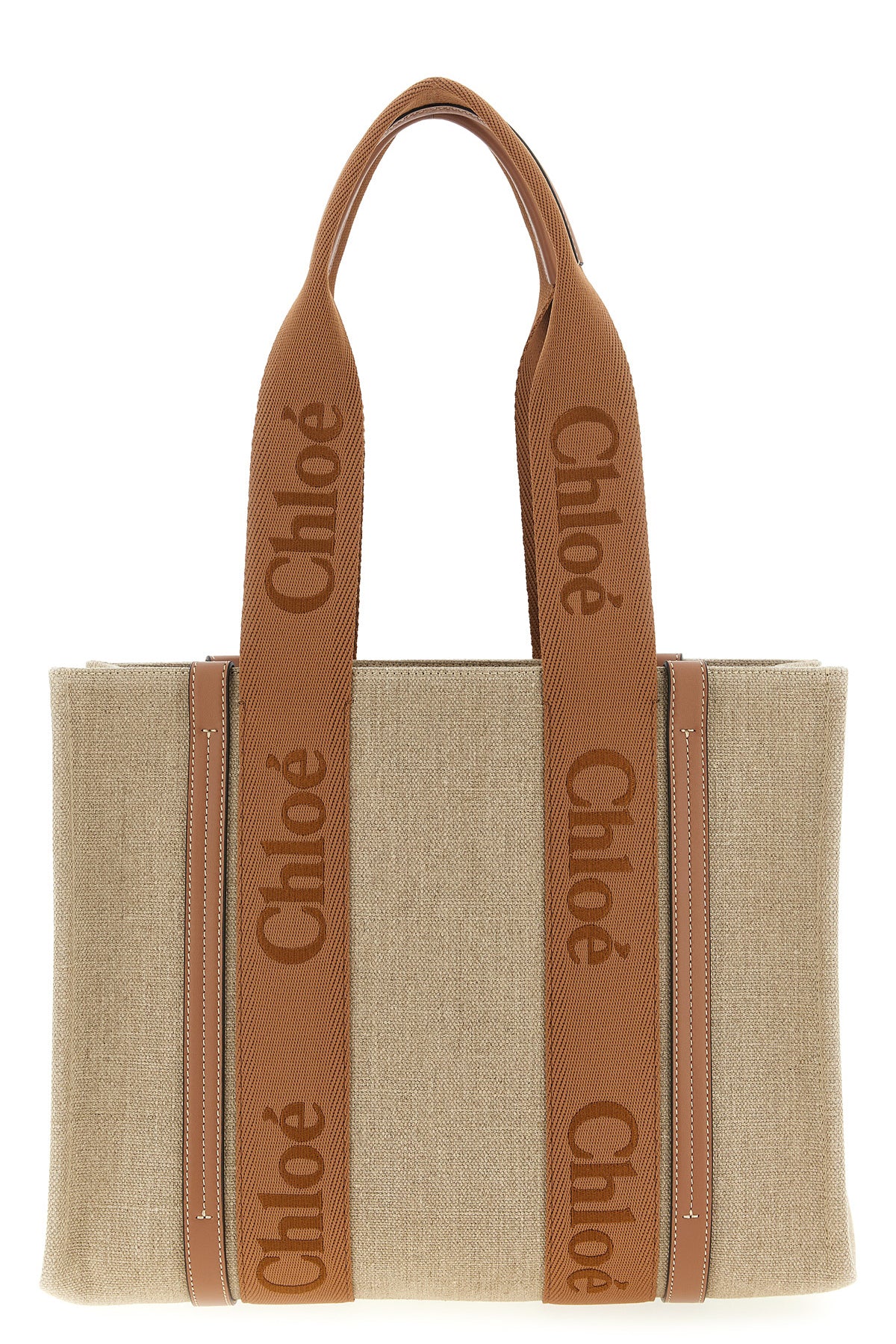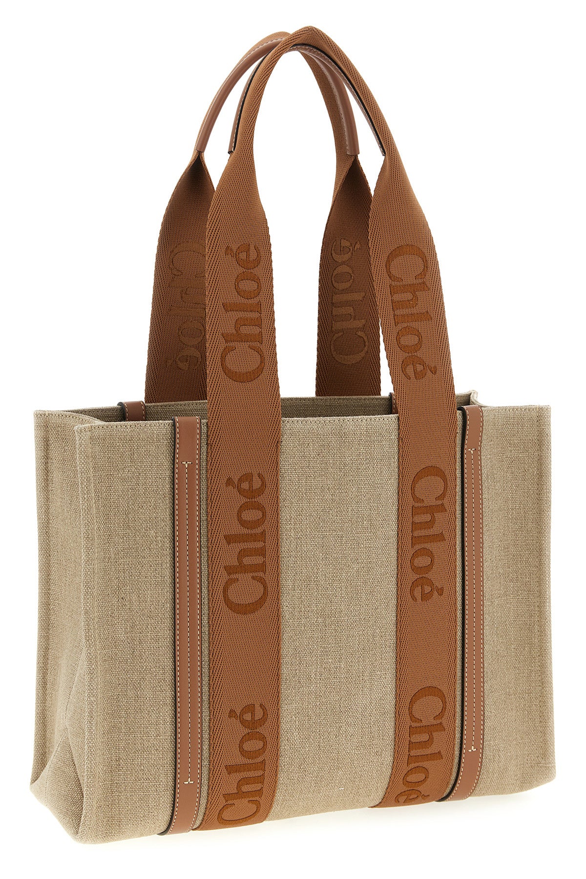 Sac cabas Woody moyen en toile avec détails en cuir et poignées logotypées.