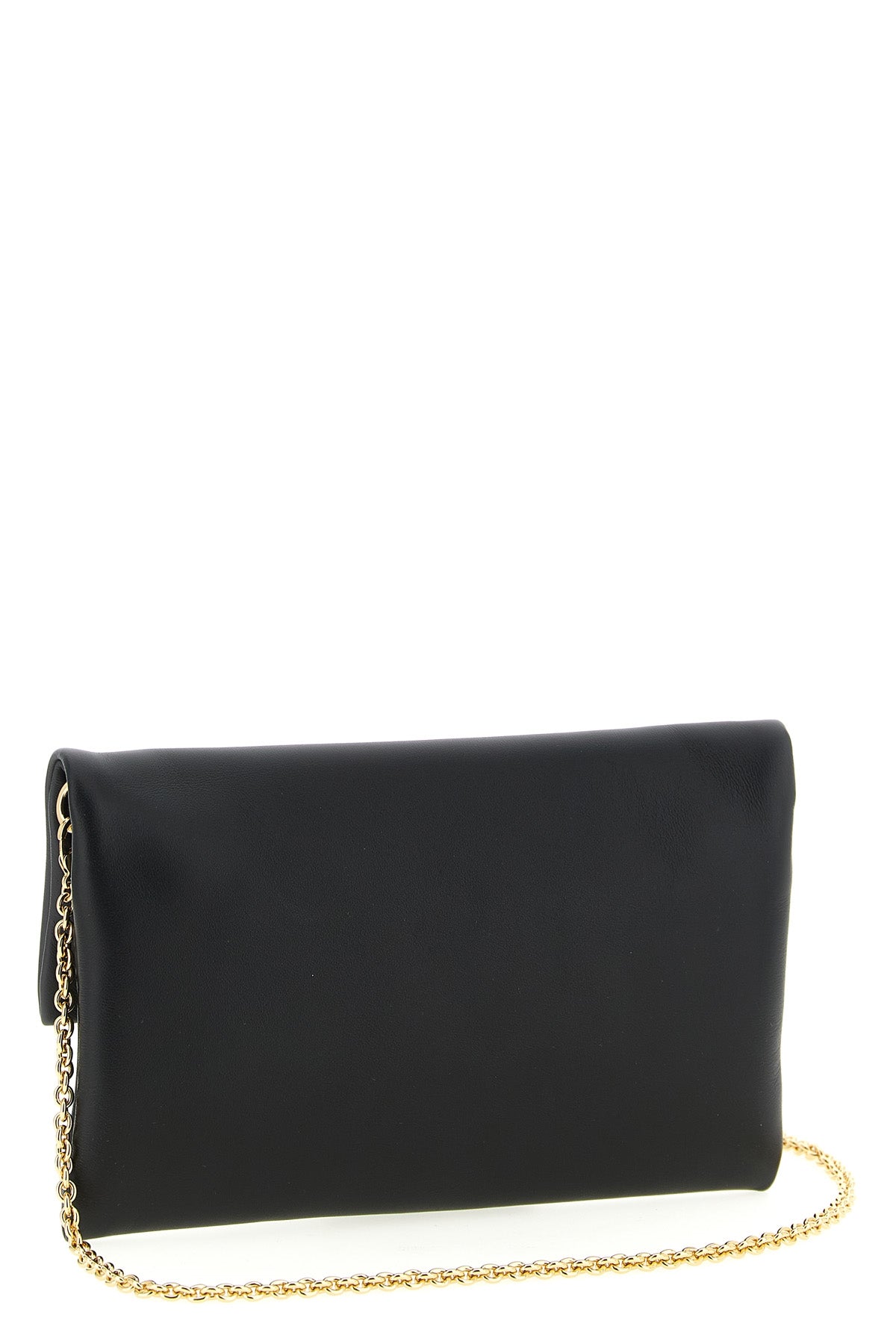 Pochette Mamma Baguette en nappa avec rabat orné du logo et fermeture magnétique, dragonne en cuir et bandoulière chaîne amovible.