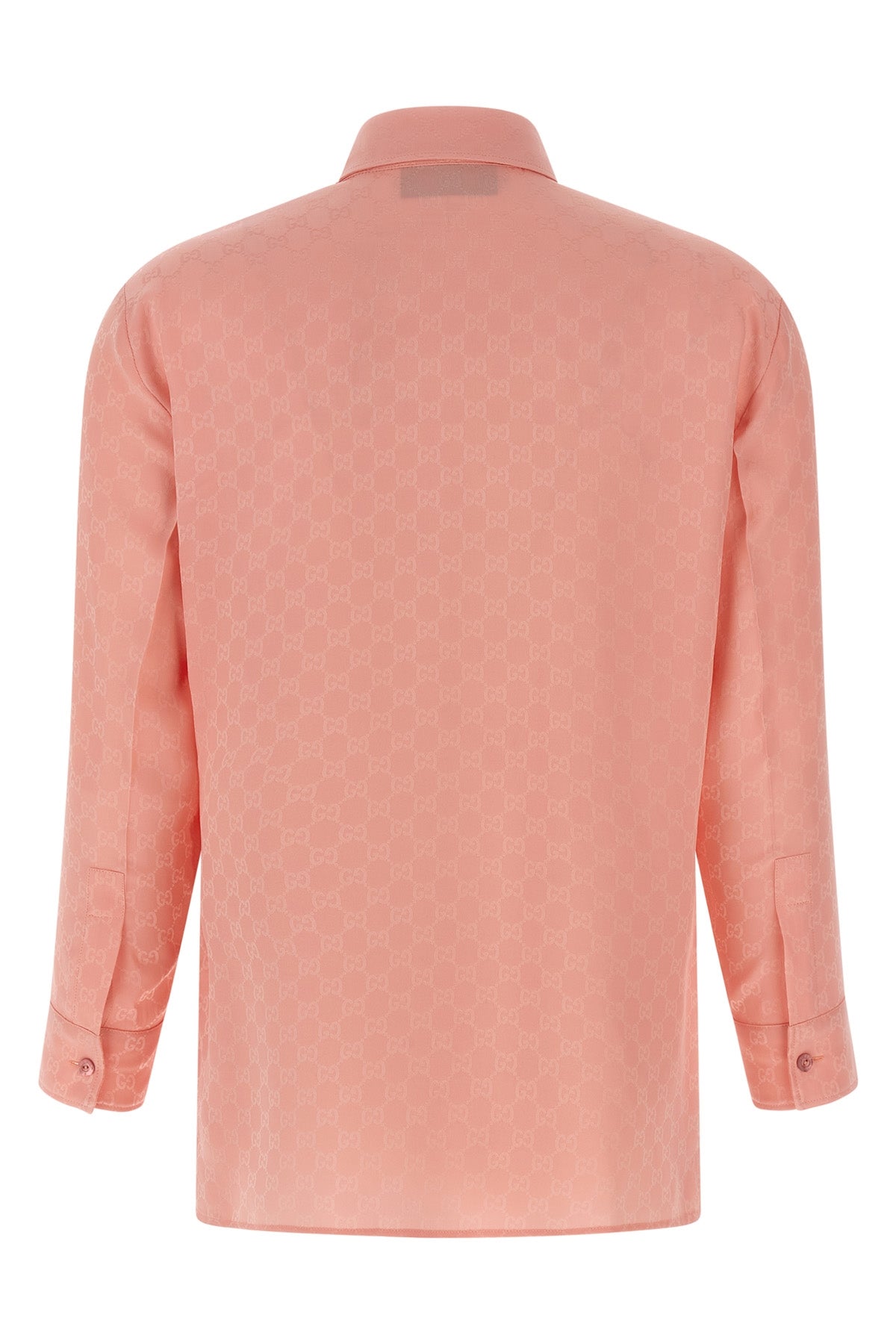 Chemise en soie tricotée GG intégralement, col, fermeture boutonnée sur le devant, manches longues avec poignets.