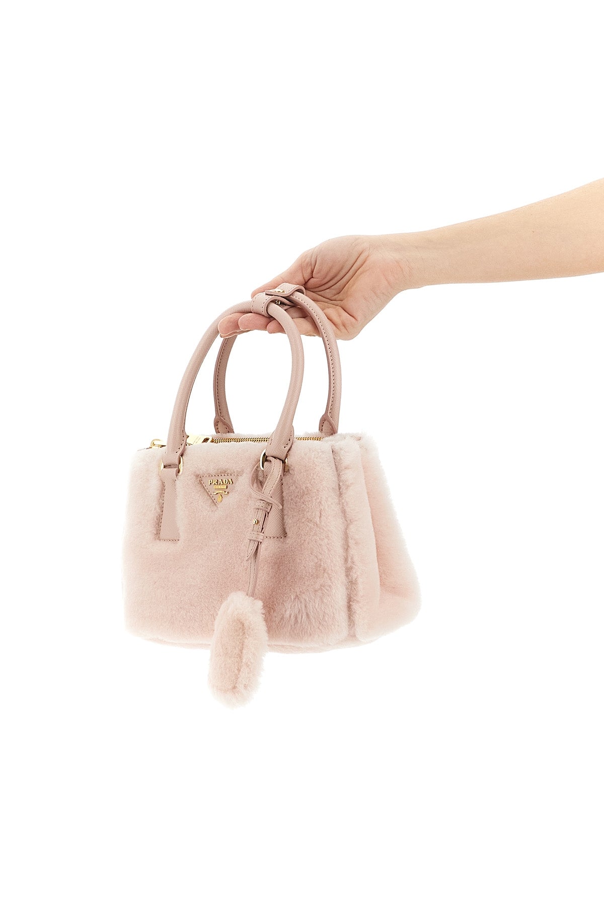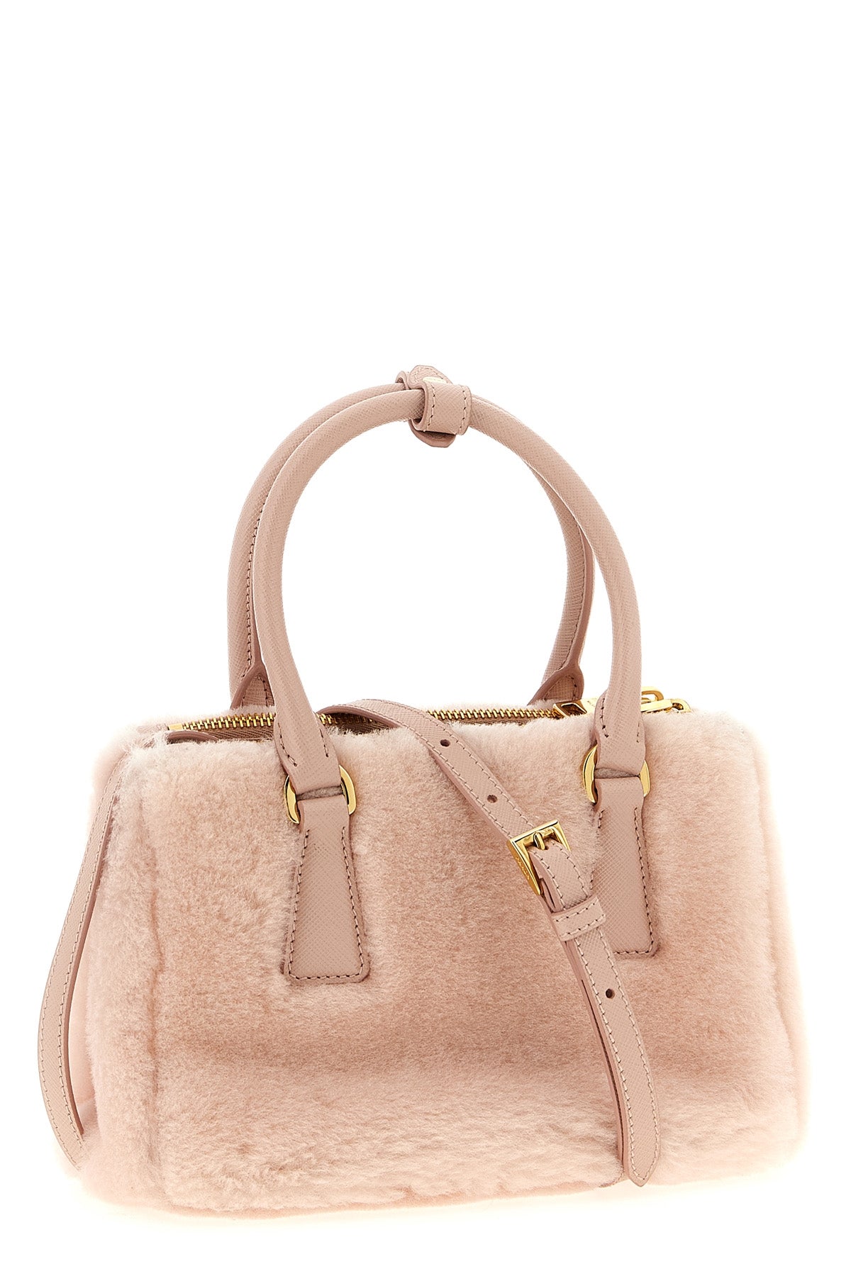 Sac à main miniature Galleria en cuir Saffiano avec doublure en peau de mouton, fermeture éclair, logo sur le devant, double poignée et bandoulière réglable et amovible.