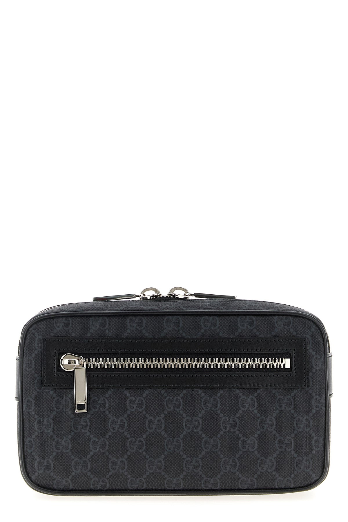 Sac banane Gg Supreme en tissu avec détails en cuir, fermeture éclair sur le dessus, poche avant zippée, bandoulière réglable en tissu à ruban coulissant avec fermeture Tuc.
