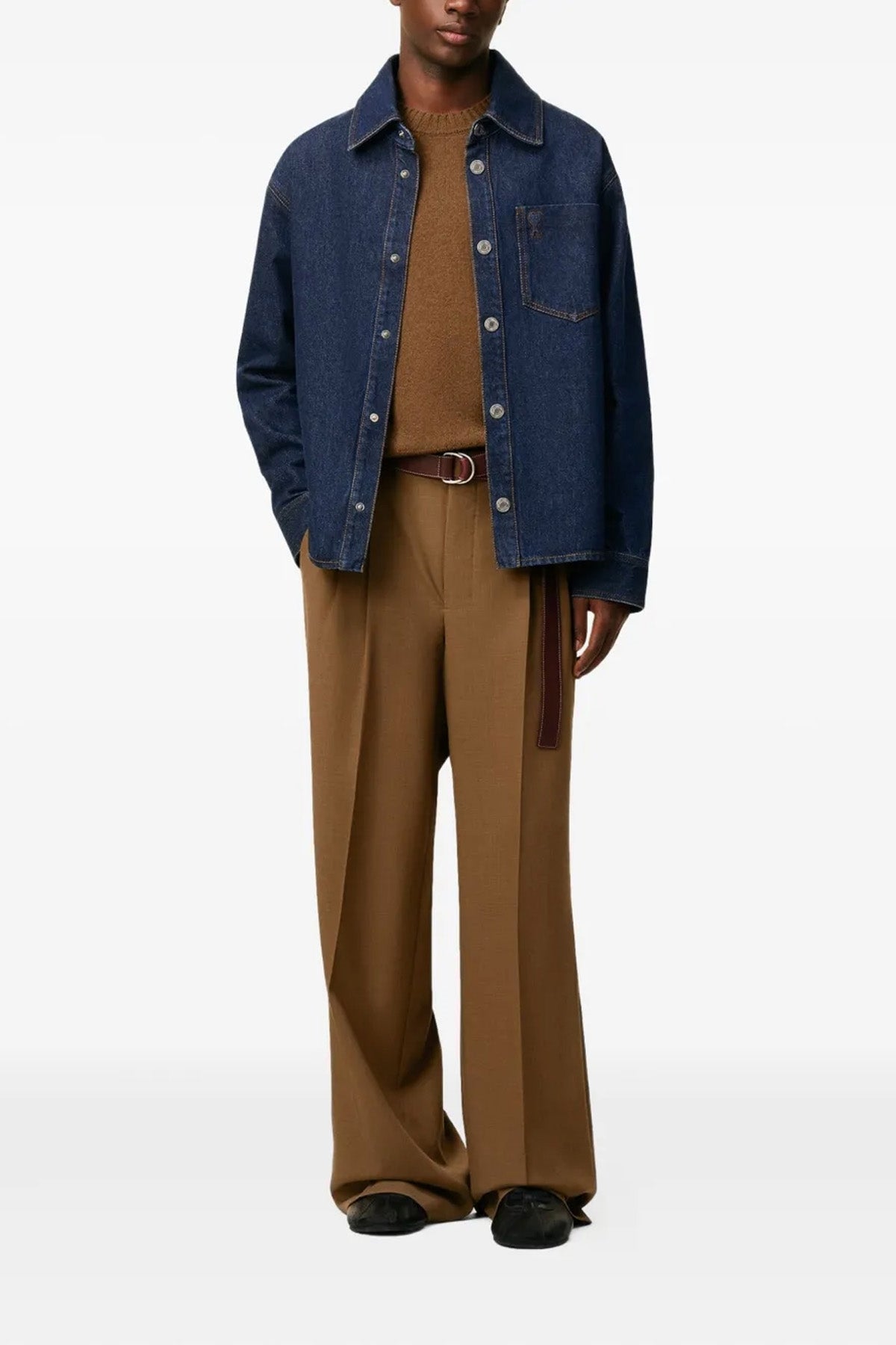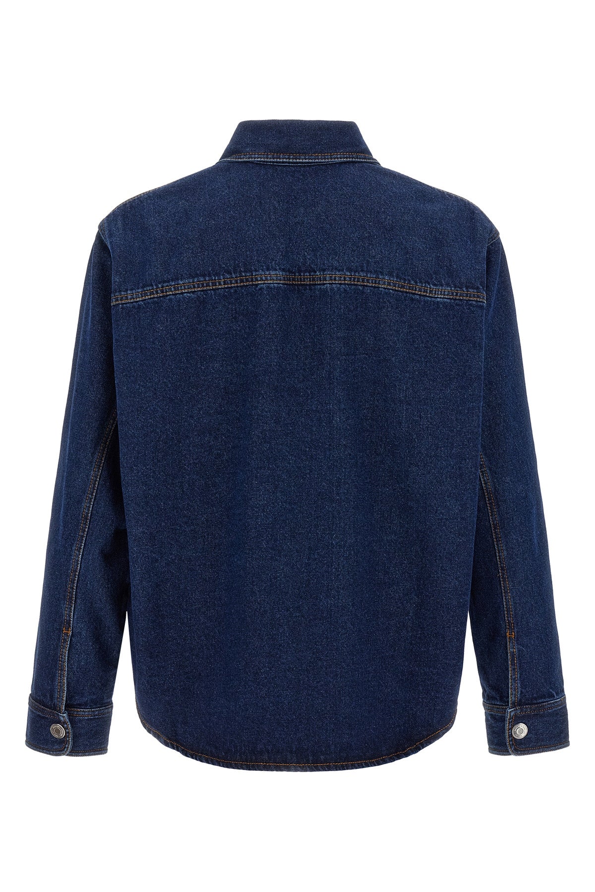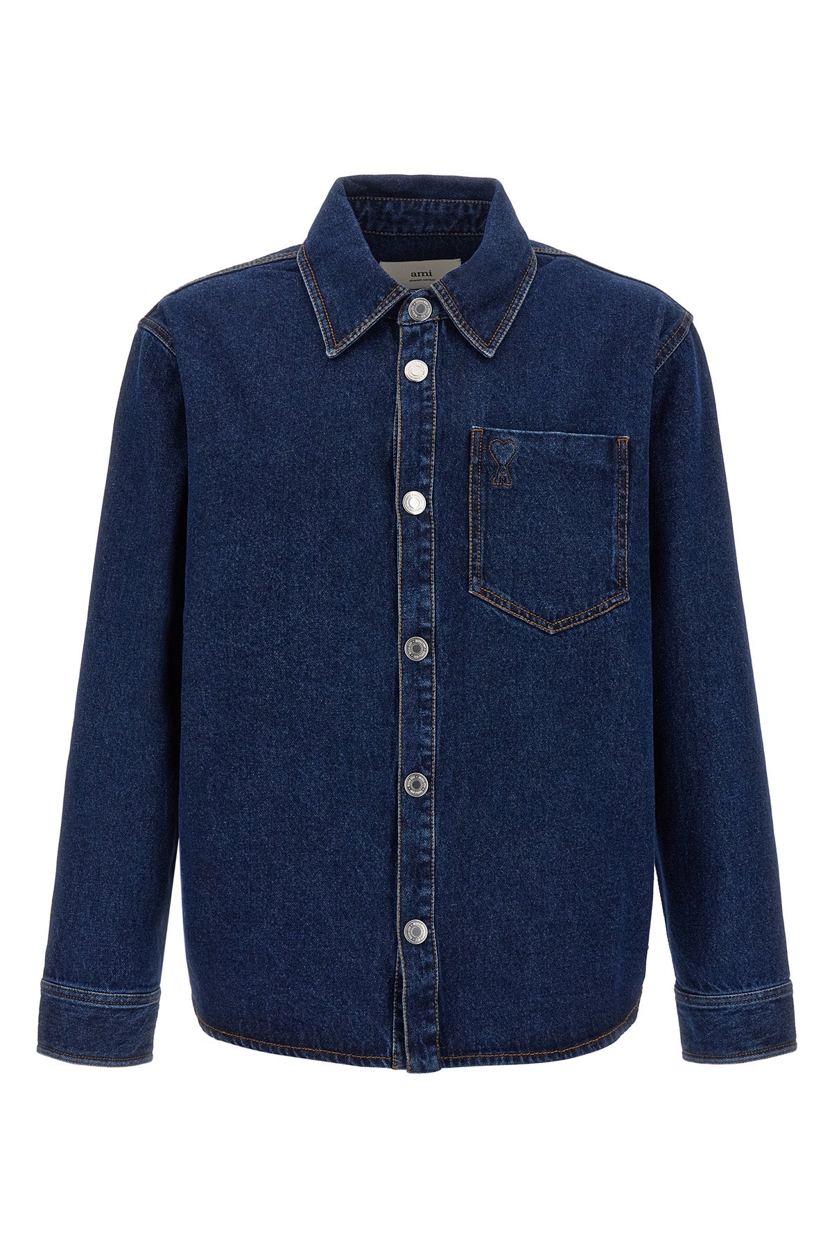 Chemise en denim de coton avec surpiqûres contrastées, poche poitrine brodée ' Ami De Coeur ', fermeture à boutons-pression sur le devant, manches longues à poignets boutonnés.