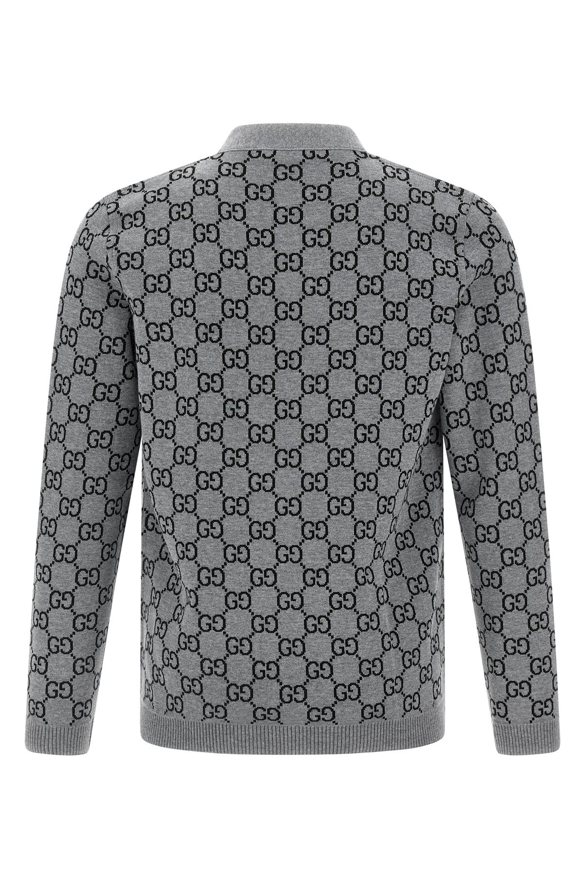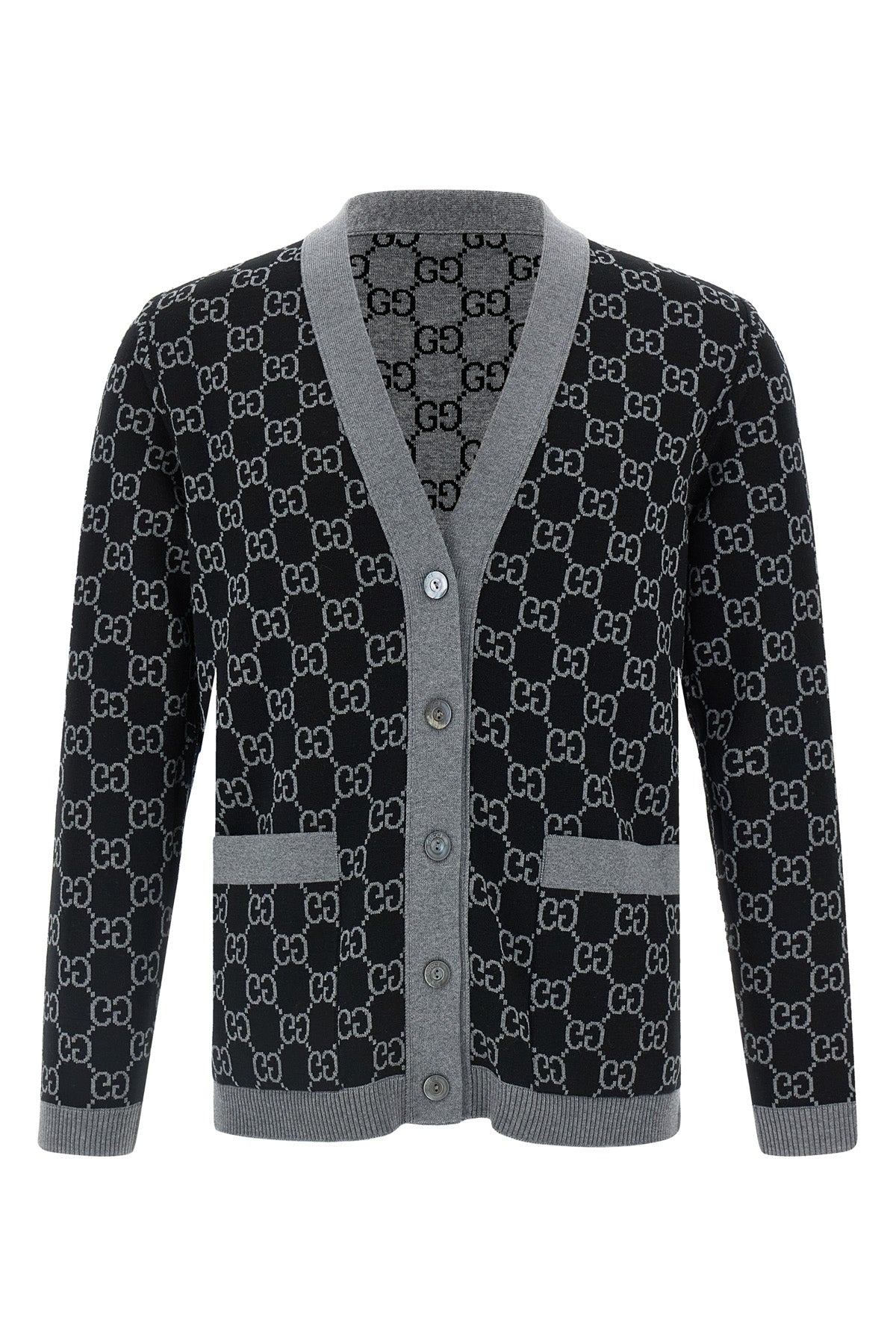 Gilet réversible en jacquard de laine ultrafine GG avec col en V, fermeture boutonnée sur le devant, poches, manches longues avec poignets et épaules tombantes.