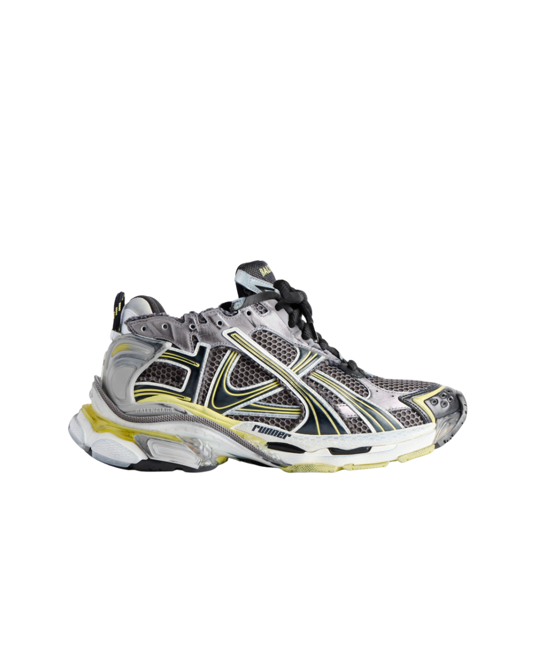 Les Balenciaga Runner blanches s’inspirent des chaussures de running vintage avec une esthétique futuriste propre à la maison Balenciaga. Leur design multicouche associe mesh technique et nylon, créant un look dynamique et texturé qui rappelle les sneakers de course des années 2000.