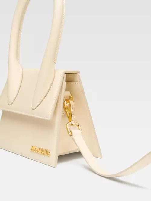 Symbole emblématique de la maison Jacquemus, le sac Le Chiquito Moyen se distingue par son design structuré et son allure raffinée. Confectionné en cuir lisse ivoire, il incarne parfaitement l’élégance minimaliste et contemporaine de la marque.