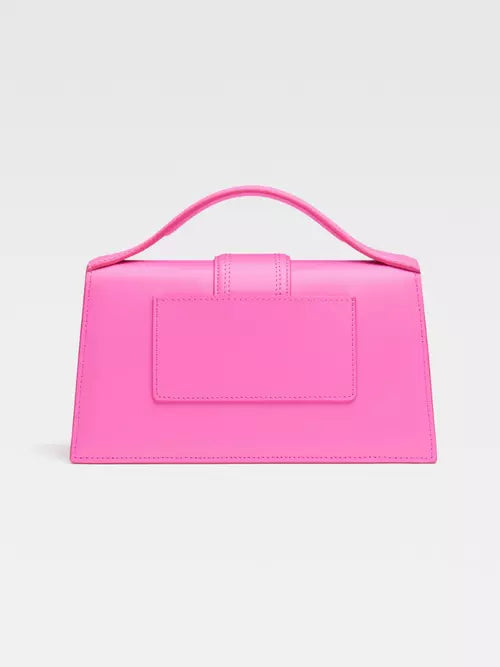 Le Grand Bambino de Jacquemus se décline ici dans une teinte rose poudrée élégante, apportant une touche de féminité et de modernité à toutes vos tenues. Confectionné en cuir lisse de haute qualité, ce modèle à la silhouette rectangulaire structurée reflète parfaitement l’esthétique minimaliste et raffinée de la maison française.