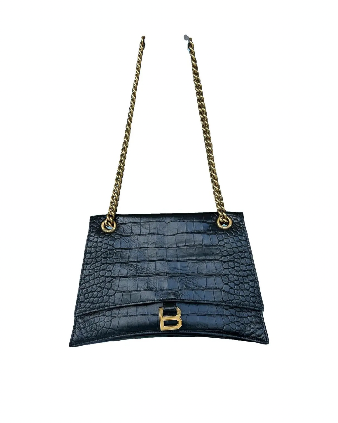Sac Balenciaga Hourglass Croco Noir – Chaîne Dorée