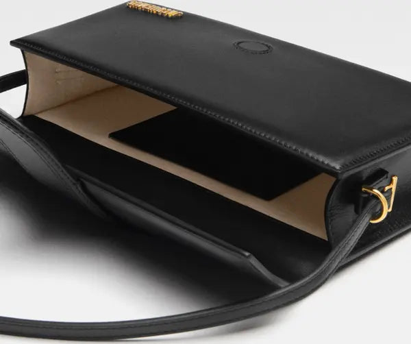 Icône de l’élégance minimaliste, le Jacquemus Le Bambino Long se distingue par ses lignes épurées et son allure sophistiquée. Confectionné en cuir lisse noir, ce modèle est sublimé par des finitions en métal doré et le logo signature Jacquemus.